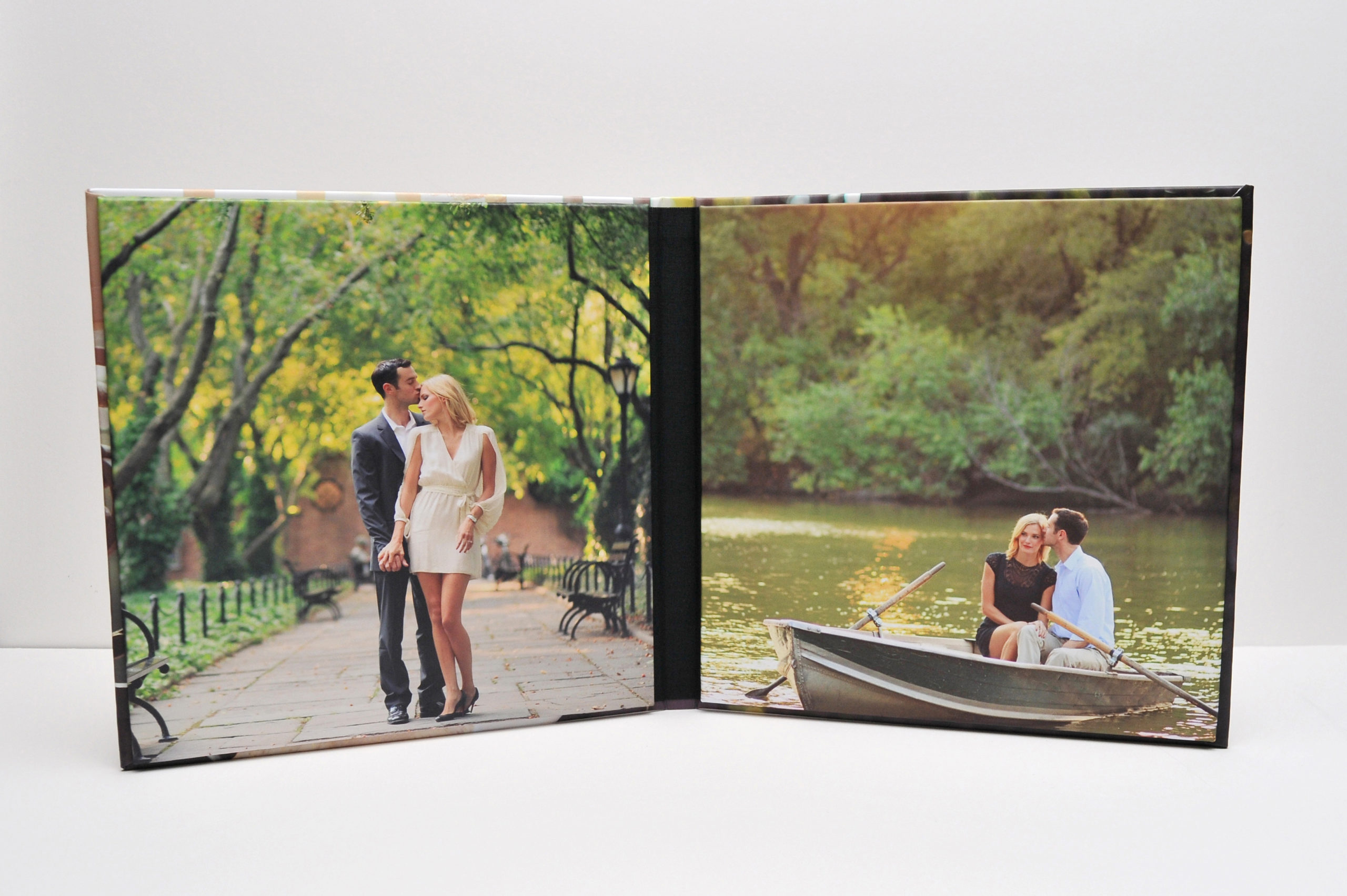 Image Folios are designed for high-end image presentation for your desktop, bookshelf or coffee table. Two images are printed and finished to match the cover then wrapped around the edge of mounting board for a polished look. Covers include a custom image as well. Page finish can be either traditional Satin or Metallic.